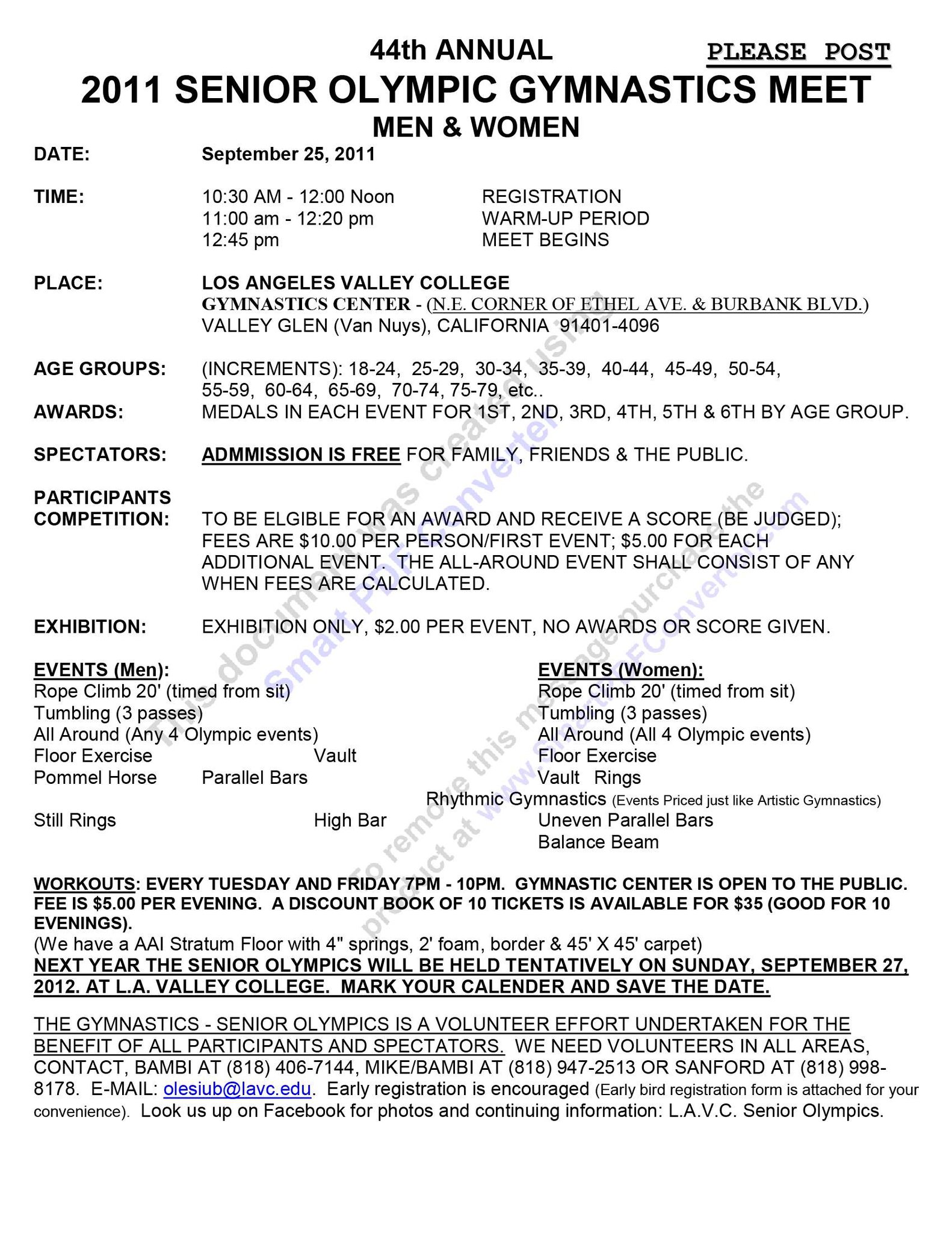 If you compete, you might even see the legendary 80 year old Ebba, winner of the 2008 Senior Olympics for her age division.