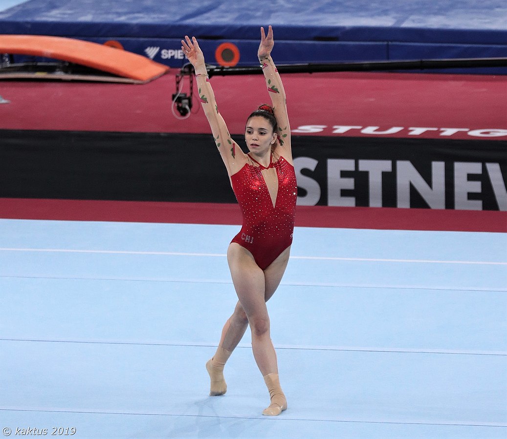 Simona Castro of Chile is shown competing at the 2019 worlds (Image Source).